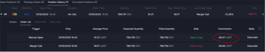 This sometimes confuses traders because other exchanges don’t show it in PnL. Instead, they quietly subtract the fee from your account balance without tying it to the position. That can make their PnL look “better,” but it isn’t more accurate.