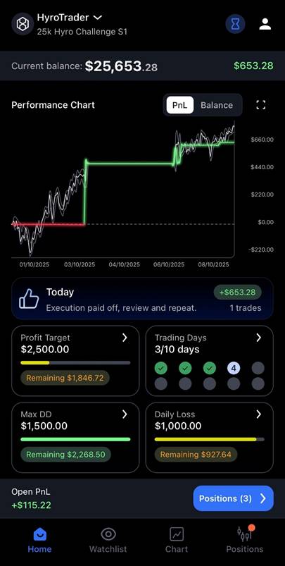 1. The Dashboard that lets you know exactly where you are in your prop firm challenge progress.