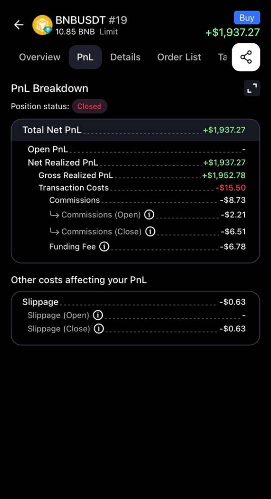All exchanges have costs to their positions, even if they don’t show them. We’re fixing that. Swipe to the Position Details Pannel and really understand what the costs associated with the position are.