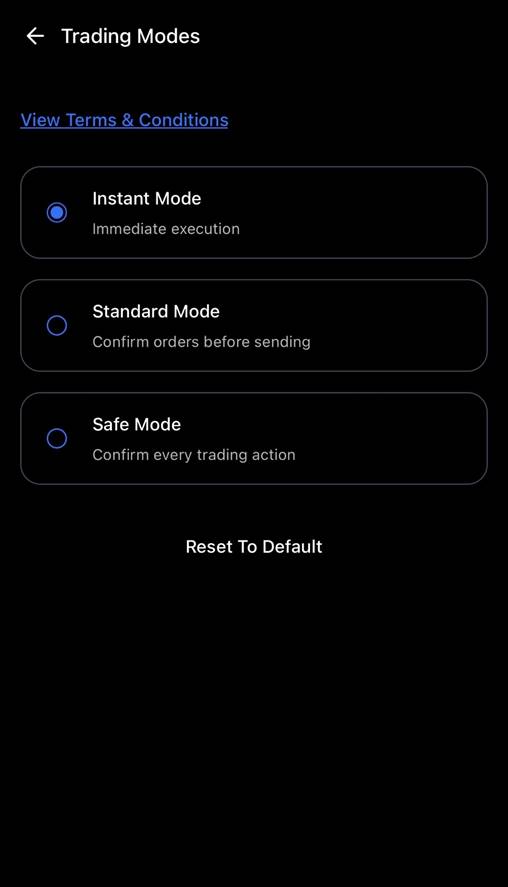 Some traders value speed, others caution. Not to mention that removing your Stop Loss can be the reason why you fail with some prop firms. We understand this and offer Trading Defaults that set exactly how your actions are executed. Safe Mode has a confirmation window for everything, Instant for nothing. For those in between we have Standard Mode. Set them in Account Settings.